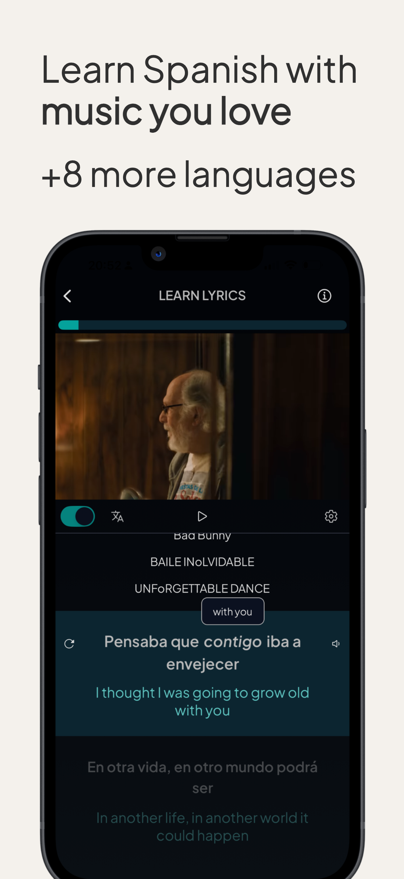"Awesome app! I've been looking for something like this for such a long time. I am currently learning Spanish for a trip round South America. It makes it so much more fun learning a language from songs that you enjoy listening to. How they have achieved this in the app is really impressive, how it pauses for each line so you can understand it then continue when you're ready, plus the other features. Keep up the great work!"