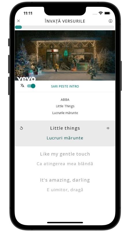 In addition to reading lyric translations, you can now learn English with music and lyrics from your favorite artists.