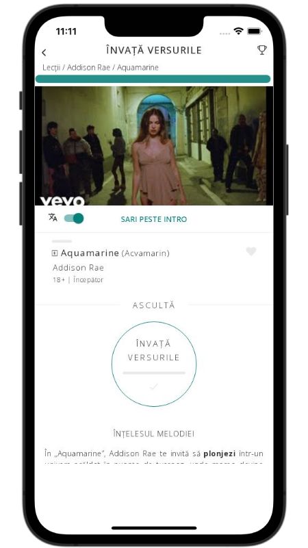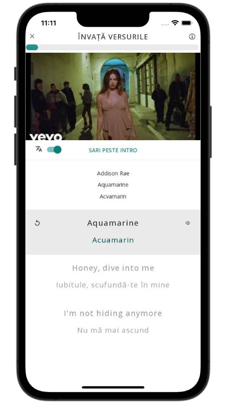In addition to reading lyric translations, you can now learn English with music and lyrics from your favorite artists.