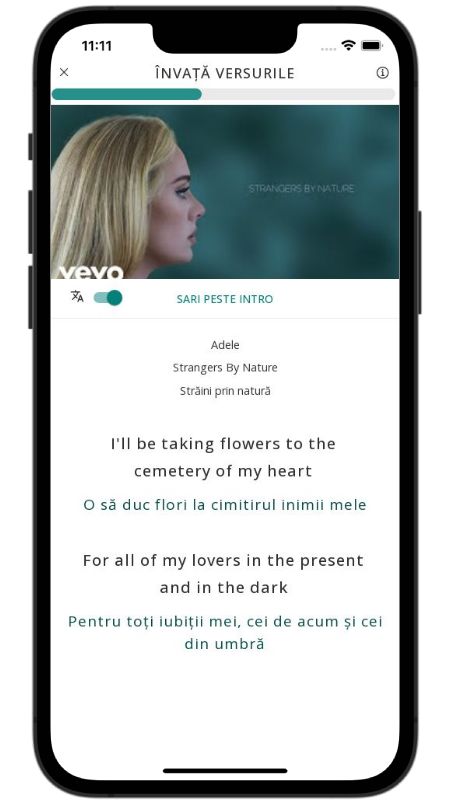 Refrenul Strangers by Nature vorbește despre distanța dintre doi oameni care, deși cândva apropiați, au devenit străini prin însăși natura lor schimbătoare. Totuși, piesa nu rămâne blocată în tristețe; ea aduce o notă de speranță. Adele își promite că, într-o bună zi, va învăța să "nuture ceea ce a făcut", transformând greșelile în lecții și începând un nou capitol cu un simplu, dar curajos, "Alright then, I'm ready". Cântecul este, astfel, un ritual muzical de despărțire, acceptare și renaștere, perfect pentru oricine vrea să-și exerseze româna explorând nuanțele emoțiilor umane.
