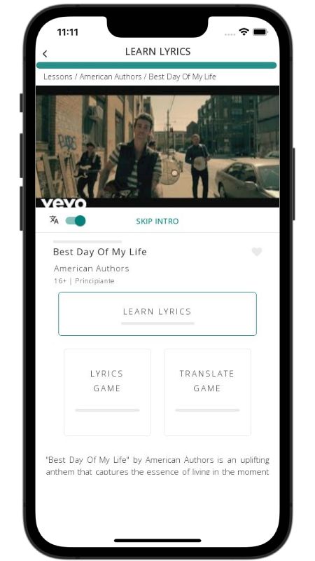 In addition to reading lyric translations, you can now learn English with music and lyrics from your favorite artists.