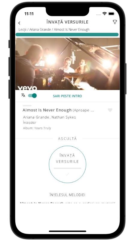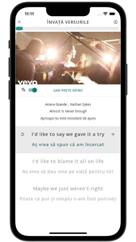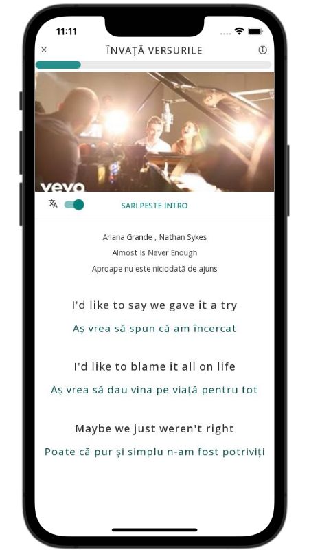 In addition to reading lyric translations, you can now learn English with music and lyrics from your favorite artists.