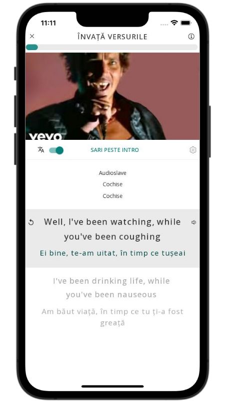 In addition to reading lyric translations, you can now learn English with music and lyrics from your favorite artists.