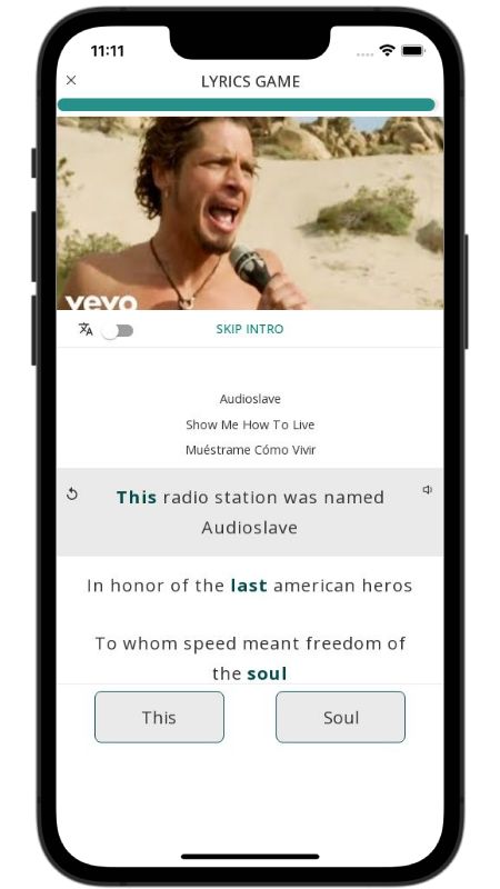 In addition to reading lyric translations, you can now learn English with music and lyrics from your favorite artists.