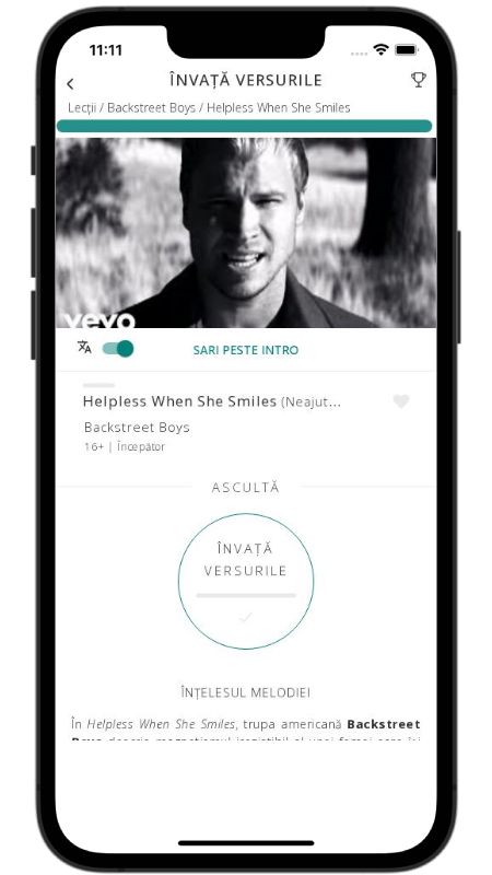 În Helpless When She Smiles, trupa americană Backstreet Boys descrie magnetismul irezistibil al unei femei care își ascunde sentimentele în spatele unor minciuni seducătoare. Povestitorul se simte fragil, „o casă din cărți într-un uragan”, dar tot revine la ea pentru că zâmbetul ei îl împinge într-o aventură plină de emoții contradictorii. Deși știe că relația îl rănește, durerea devine o dovadă vie a pasiunii care îi unește.