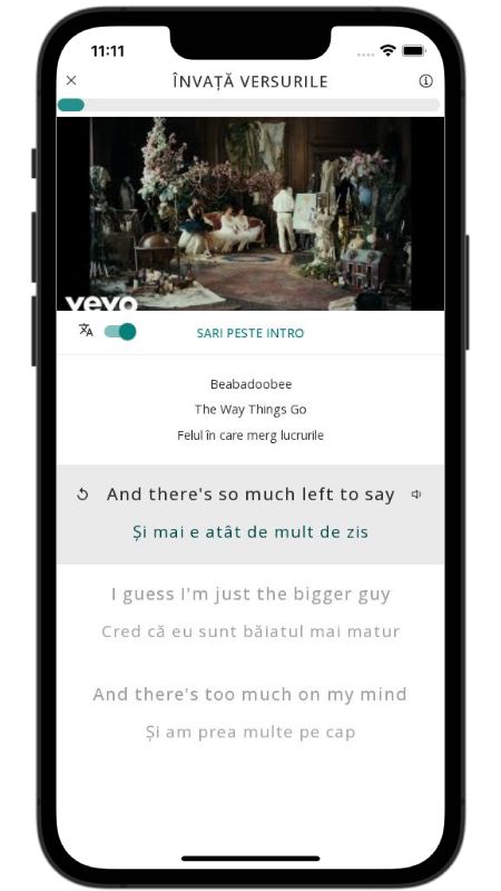 In addition to reading lyric translations, you can now learn English with music and lyrics from your favorite artists.