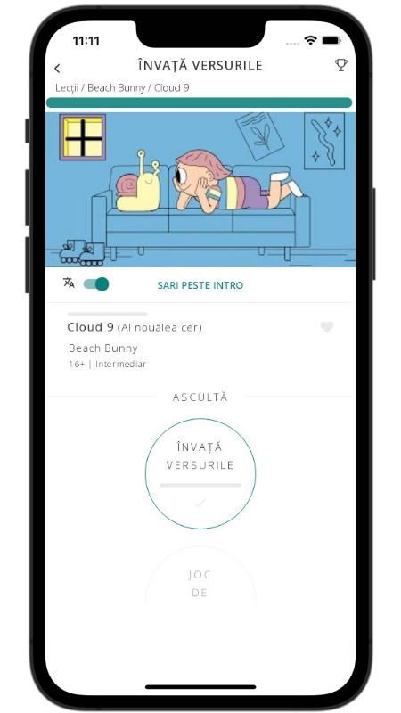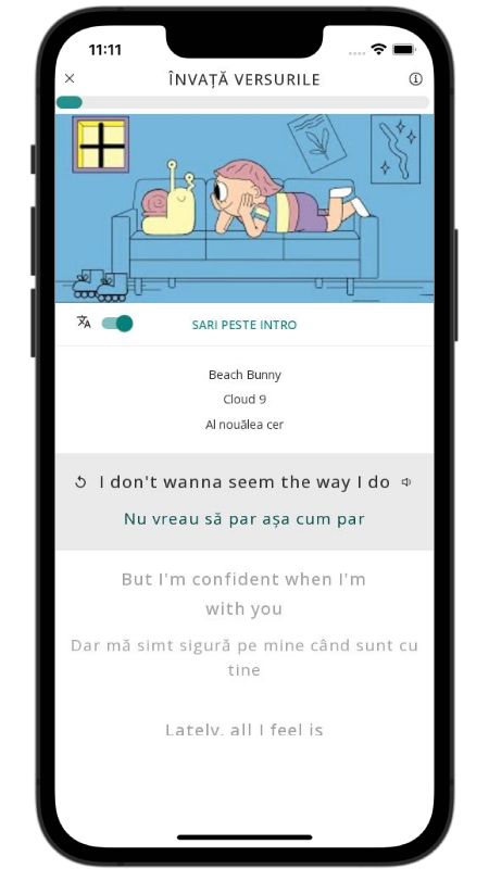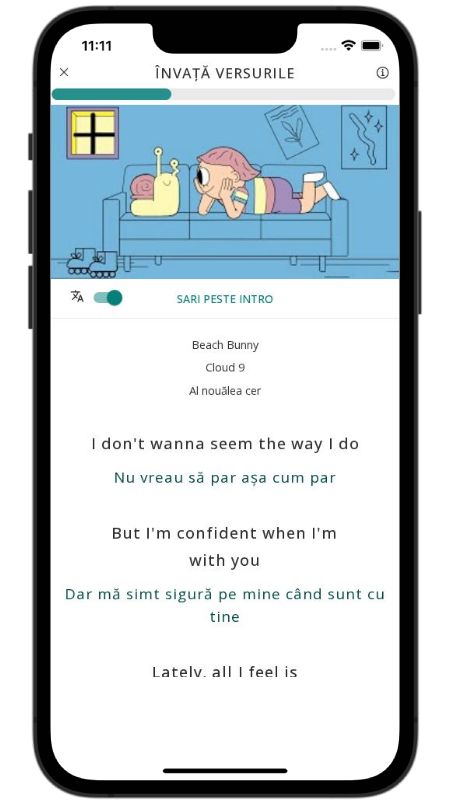 In addition to reading lyric translations, you can now learn English with music and lyrics from your favorite artists.