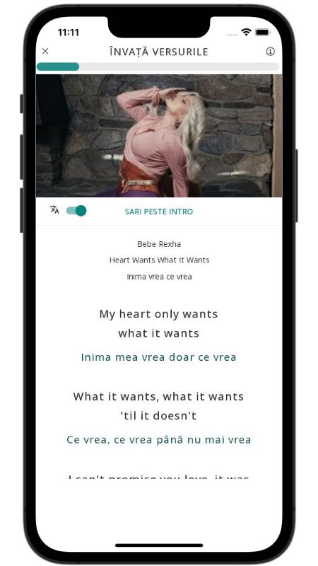 In addition to reading lyric translations, you can now learn English with music and lyrics from your favorite artists.