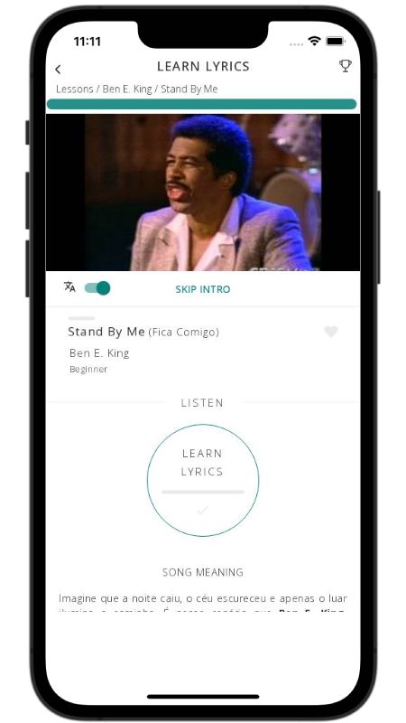 In addition to reading lyric translations, you can now learn English with music and lyrics from your favorite artists.