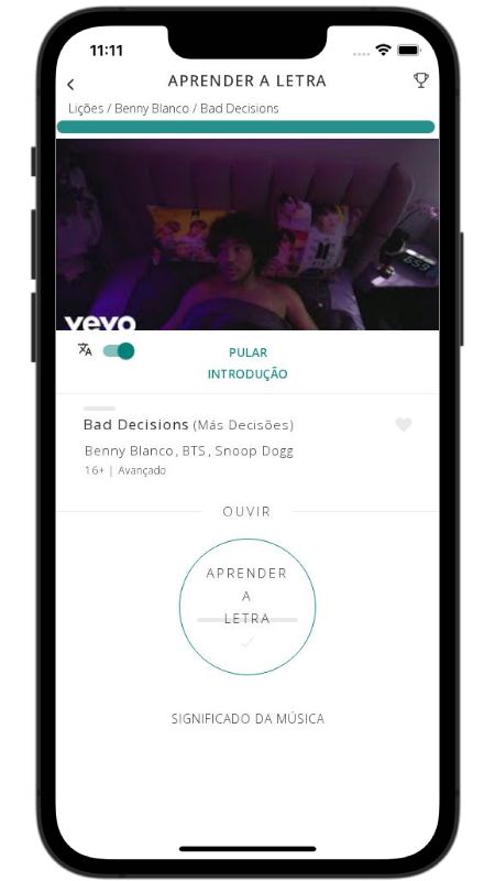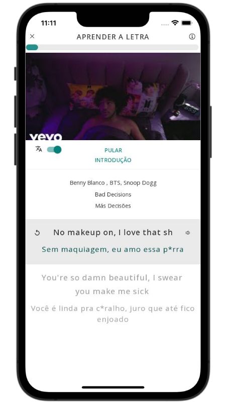 In addition to reading lyric translations, you can now learn English with music and lyrics from your favorite artists.