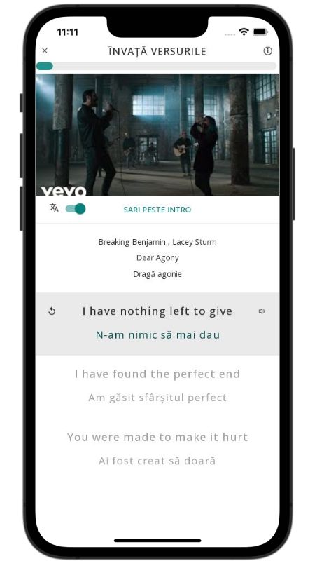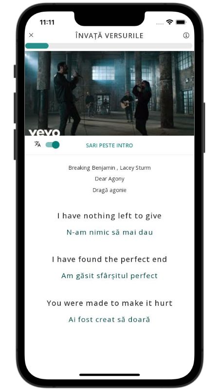 In addition to reading lyric translations, you can now learn English with music and lyrics from your favorite artists.