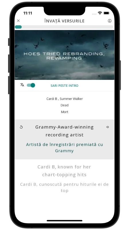 In addition to reading lyric translations, you can now learn English with music and lyrics from your favorite artists.