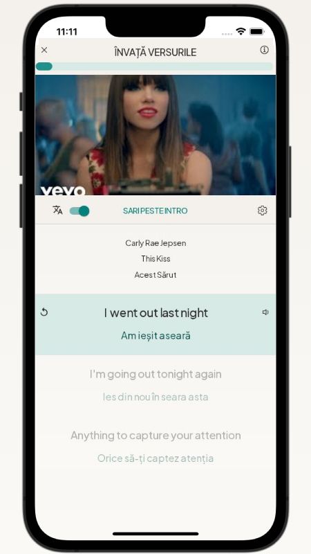 In addition to reading lyric translations, you can now learn English with music and lyrics from your favorite artists.