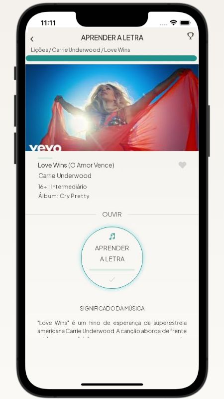 In addition to reading lyric translations, you can now learn English with music and lyrics from your favorite artists.