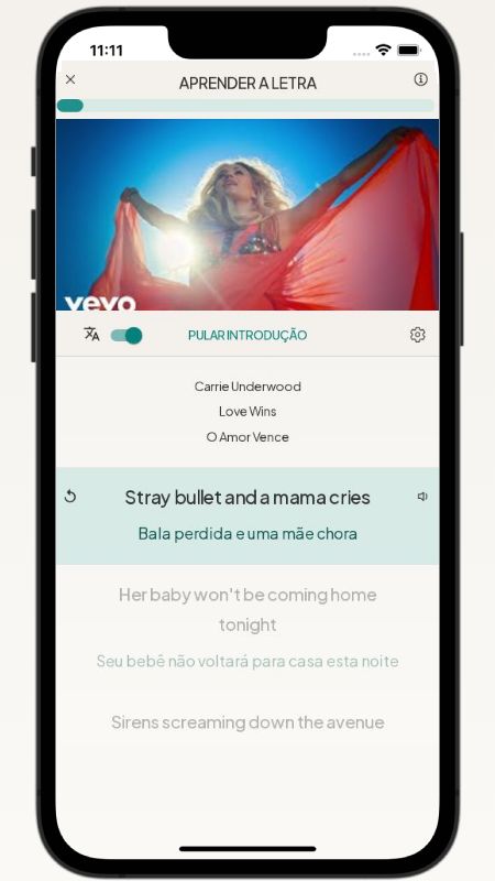 Below, I translated the lyrics of the song Love Wins by Carrie Underwood from English to Portuguese.