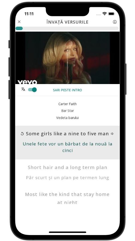 In addition to reading lyric translations, you can now learn English with music and lyrics from your favorite artists.