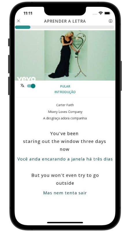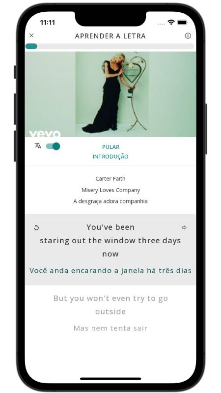 Below, I translated the lyrics of the song Misery Loves Company by Carter Faith from English to Portuguese.
