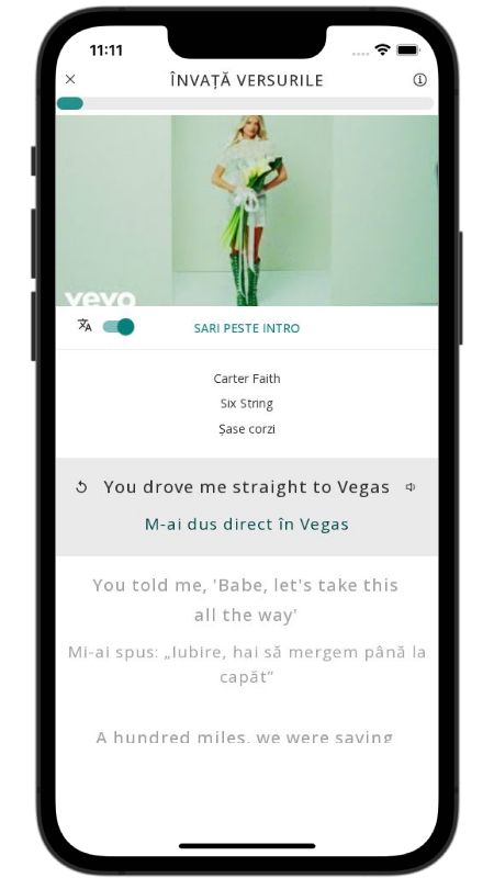 In addition to reading lyric translations, you can now learn English with music and lyrics from your favorite artists.