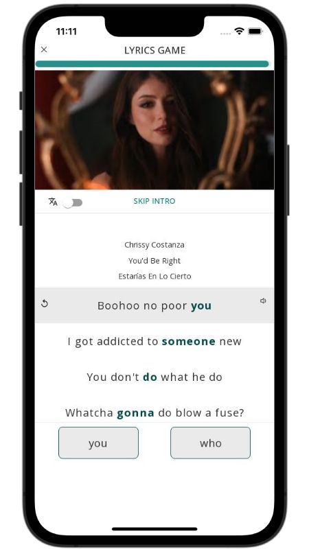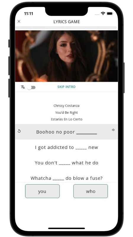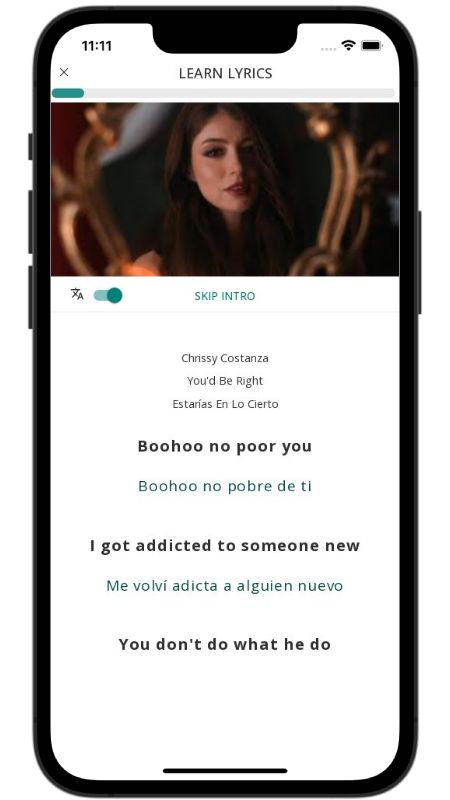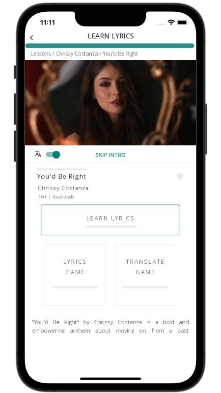In addition to reading lyric translations, you can now learn English with music and lyrics from your favorite artists.