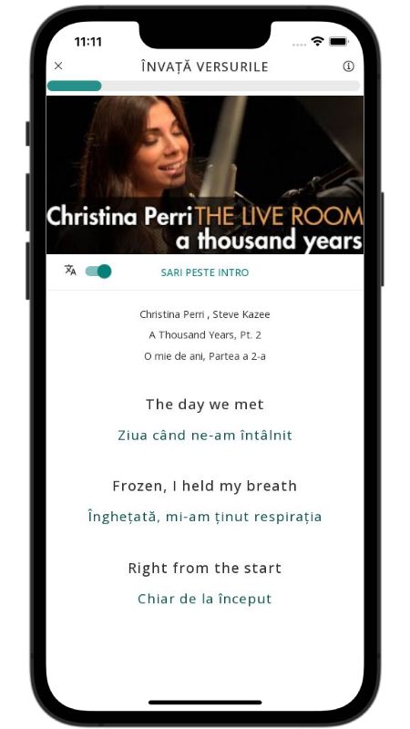 Below, I translated the lyrics of the song A Thousand Years, Pt. 2 by Christina Perri from English to Romanian.