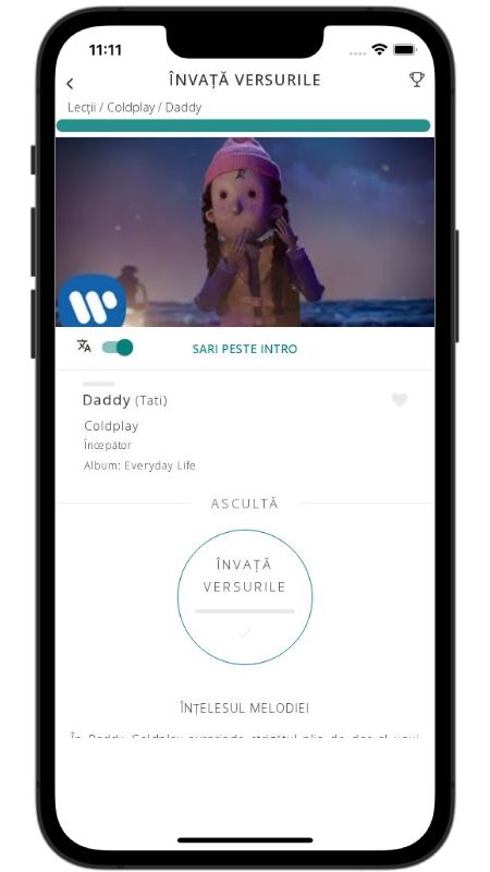 In addition to reading lyric translations, you can now learn English with music and lyrics from your favorite artists.