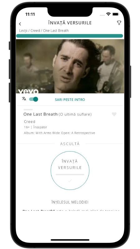 In addition to reading lyric translations, you can now learn English with music and lyrics from your favorite artists.