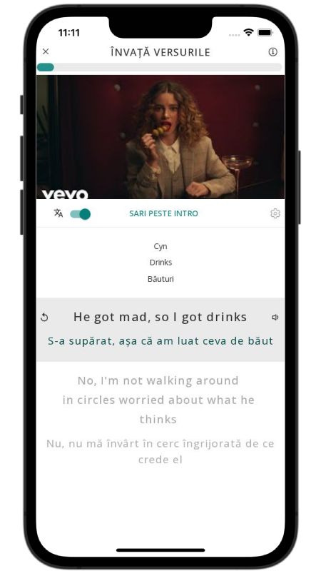 In addition to reading lyric translations, you can now learn English with music and lyrics from your favorite artists.