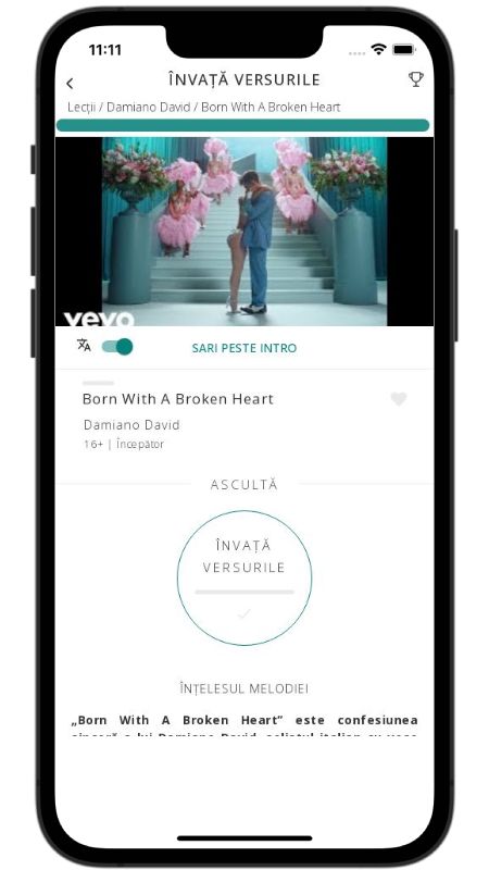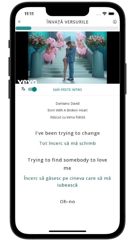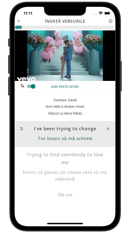 In addition to reading lyric translations, you can now learn English with music and lyrics from your favorite artists.