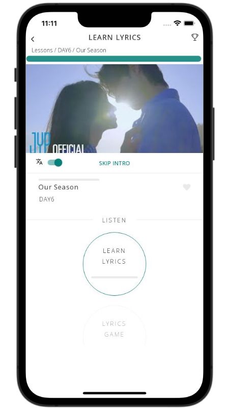 In addition to reading lyric translations, you can now learn Korean with music and lyrics from your favorite artists.