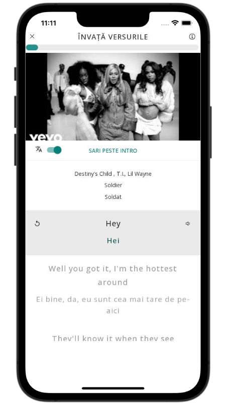 In addition to reading lyric translations, you can now learn English with music and lyrics from your favorite artists.