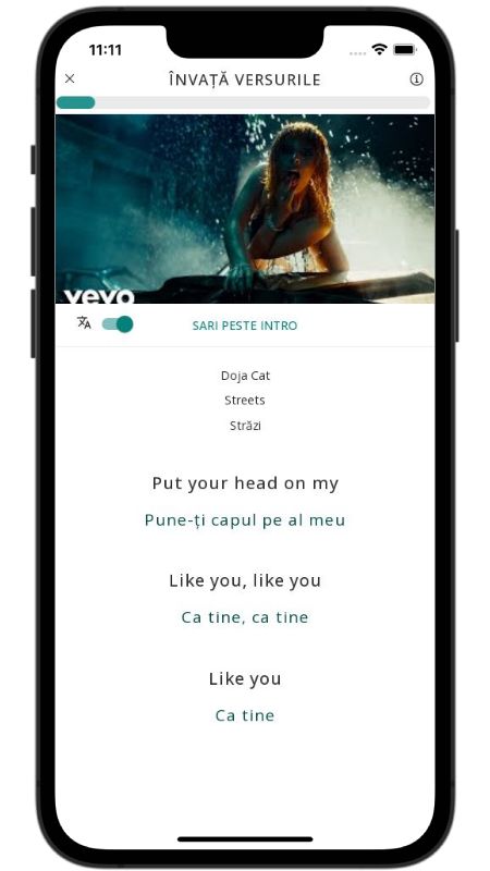 In addition to reading lyric translations, you can now learn English with music and lyrics from your favorite artists.
