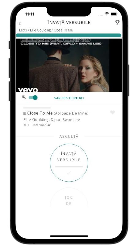 In addition to reading lyric translations, you can now learn English with music and lyrics from your favorite artists.