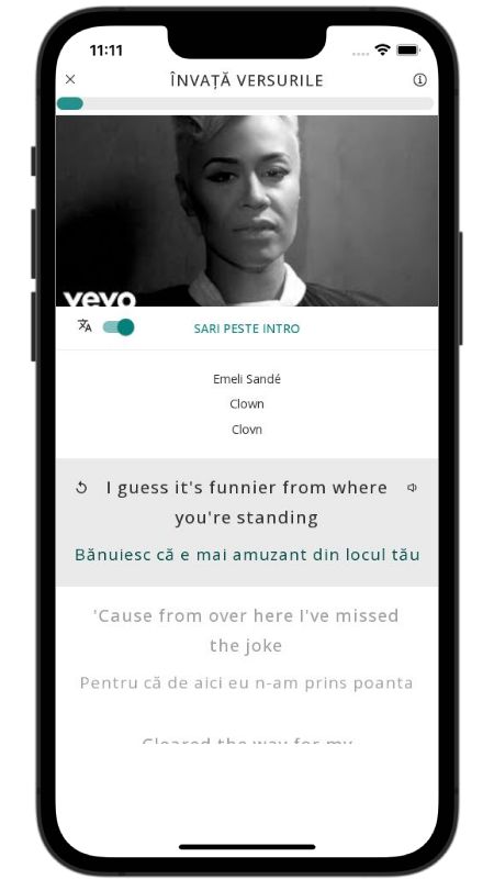 In addition to reading lyric translations, you can now learn English with music and lyrics from your favorite artists.