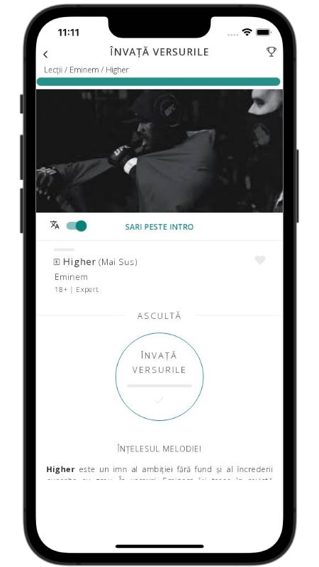 In addition to reading lyric translations, you can now learn English with music and lyrics from your favorite artists.