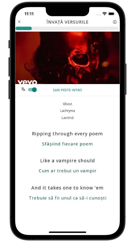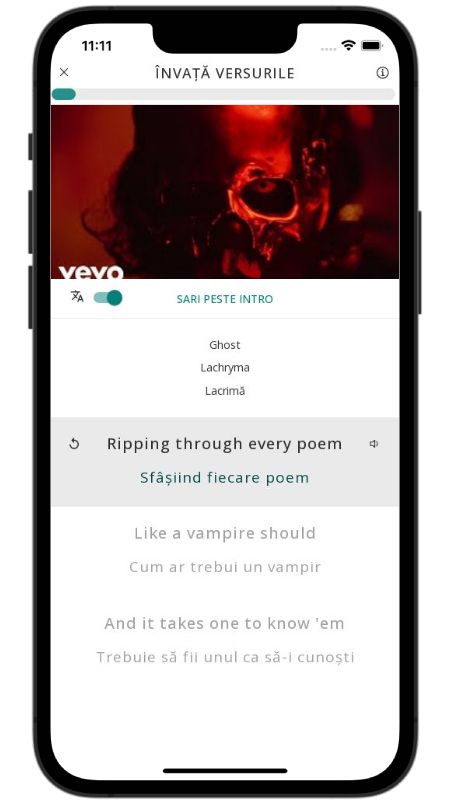 In addition to reading lyric translations, you can now learn English with music and lyrics from your favorite artists.