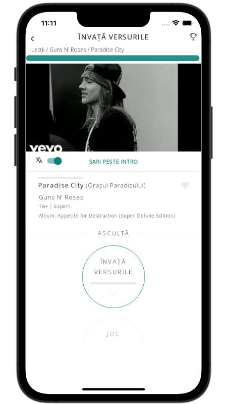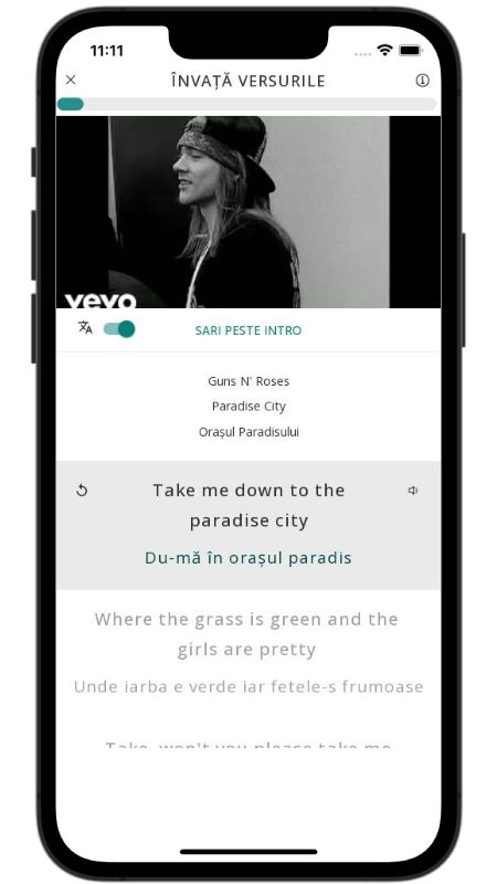 In addition to reading lyric translations, you can now learn English with music and lyrics from your favorite artists.