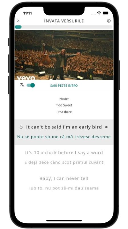 In addition to reading lyric translations, you can now learn English with music and lyrics from your favorite artists.