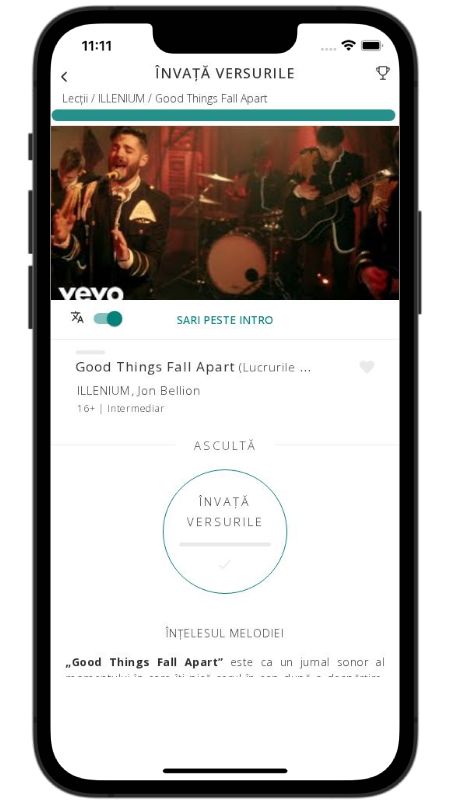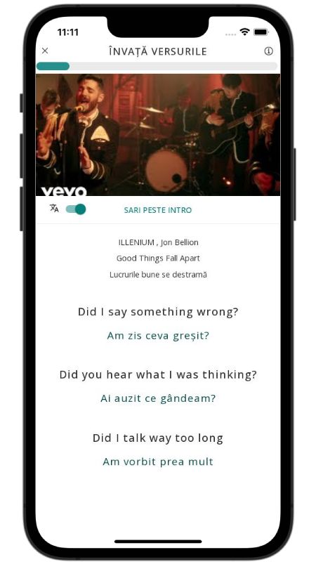 In addition to reading lyric translations, you can now learn English with music and lyrics from your favorite artists.