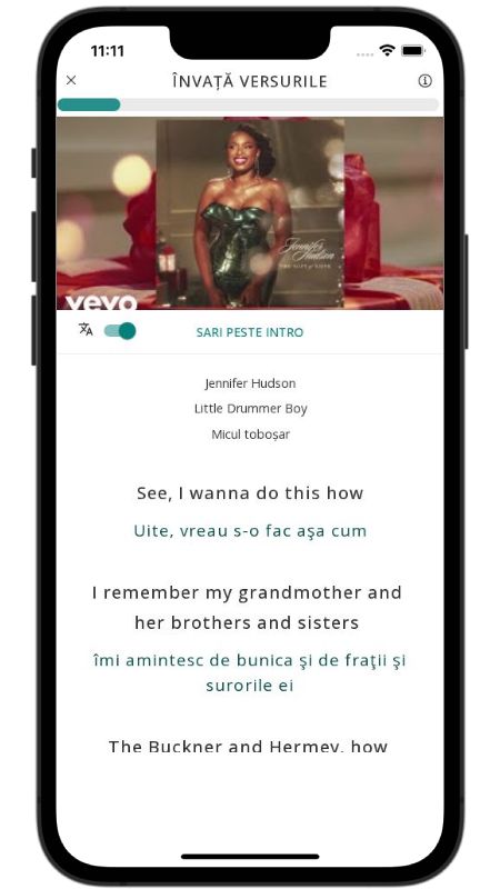 In addition to reading lyric translations, you can now learn English with music and lyrics from your favorite artists.