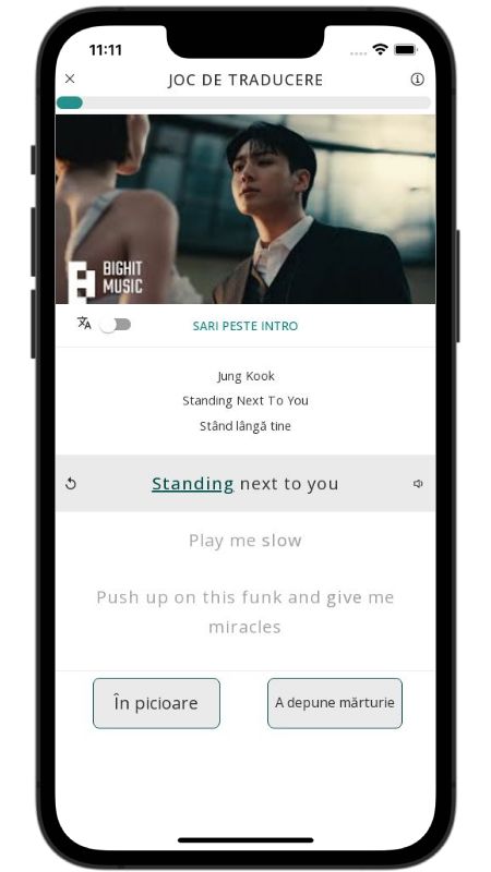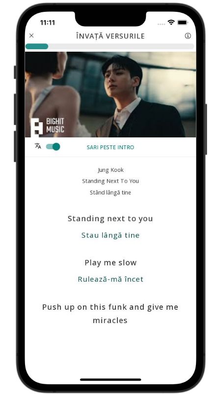 In addition to reading lyric translations, you can now learn English with music and lyrics from your favorite artists.