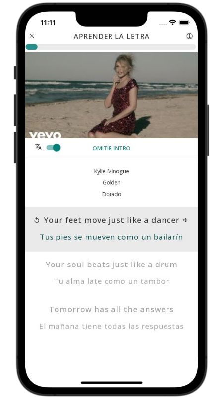 In addition to reading lyric translations, you can now learn English with music and lyrics from your favorite artists.