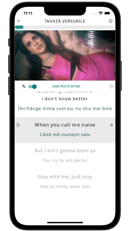 In addition to reading lyric translations, you can now learn English with music and lyrics from your favorite artists.
