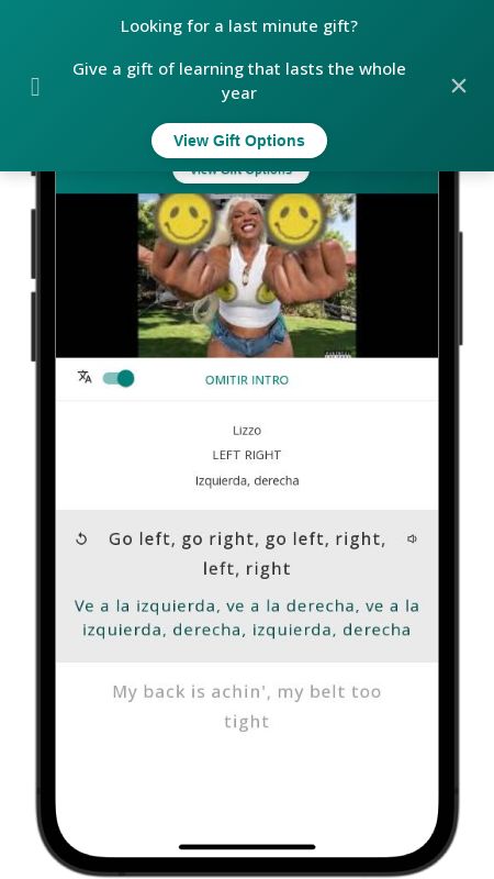 In addition to reading lyric translations, you can now learn English with music and lyrics from your favorite artists.