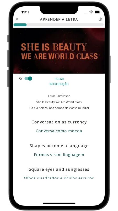 In addition to reading lyric translations, you can now learn English with music and lyrics from your favorite artists.