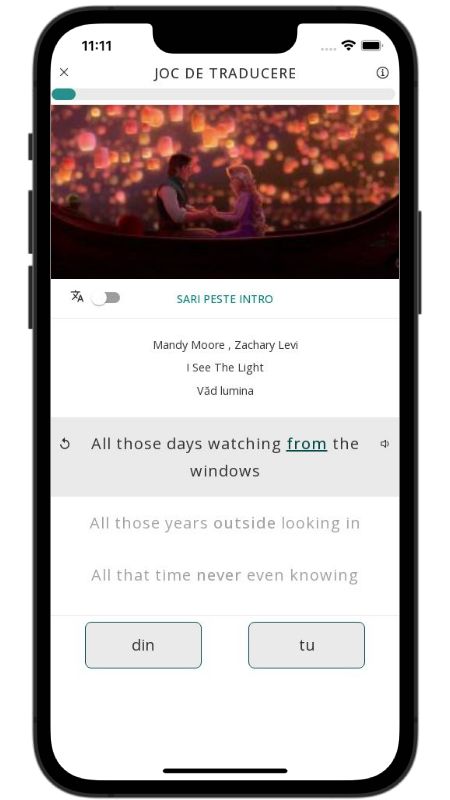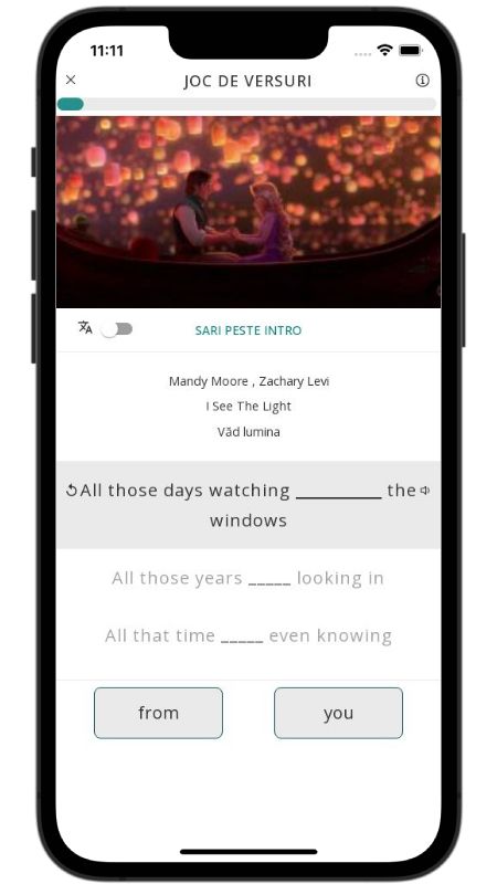 Below, I translated the lyrics of the song I See The Light by Mandy Moore from English to Romanian.