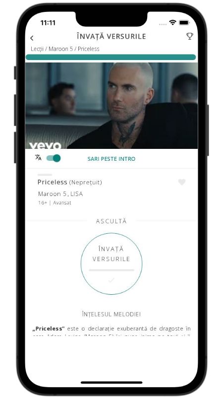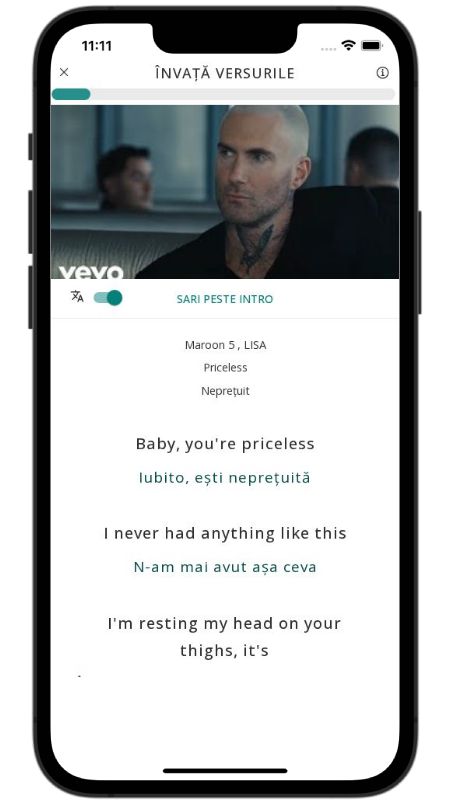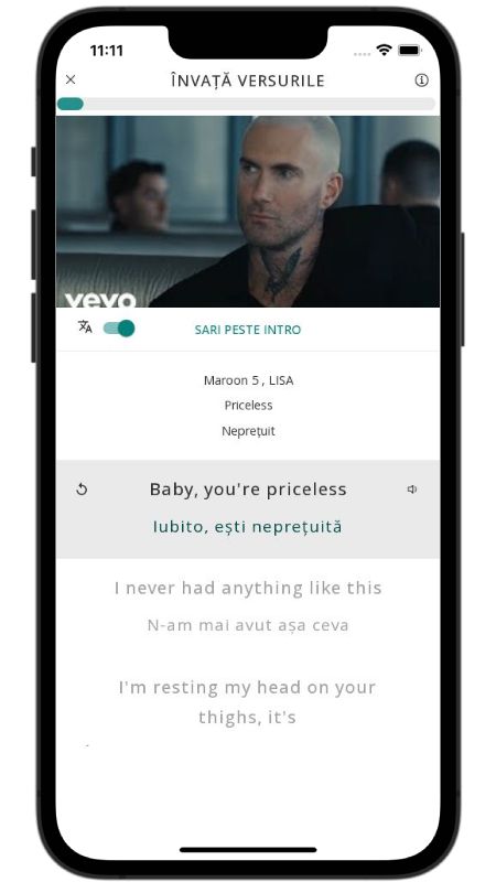 In addition to reading lyric translations, you can now learn English with music and lyrics from your favorite artists.