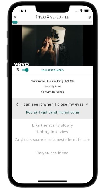 In addition to reading lyric translations, you can now learn English with music and lyrics from your favorite artists.