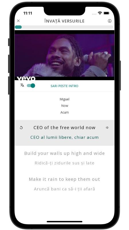 In addition to reading lyric translations, you can now learn English with music and lyrics from your favorite artists.