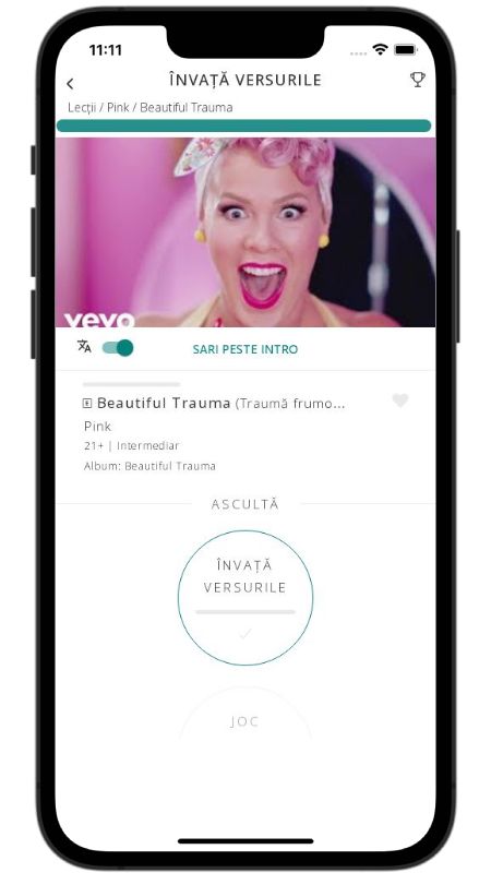 In addition to reading lyric translations, you can now learn English with music and lyrics from your favorite artists.