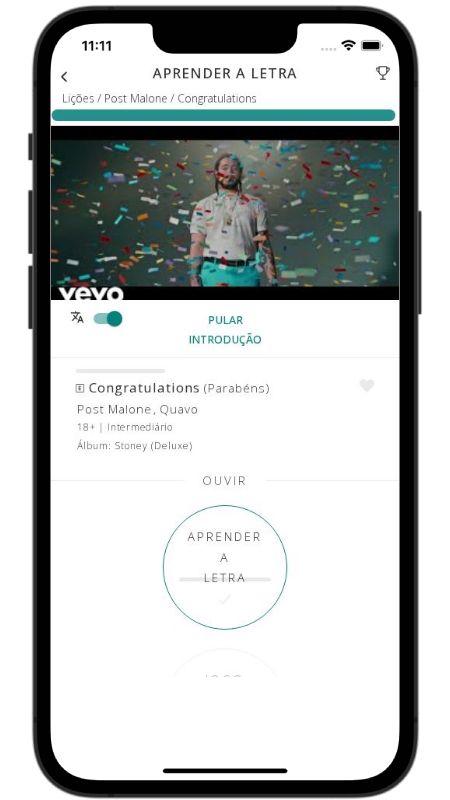 In addition to reading lyric translations, you can now learn English with music and lyrics from your favorite artists.